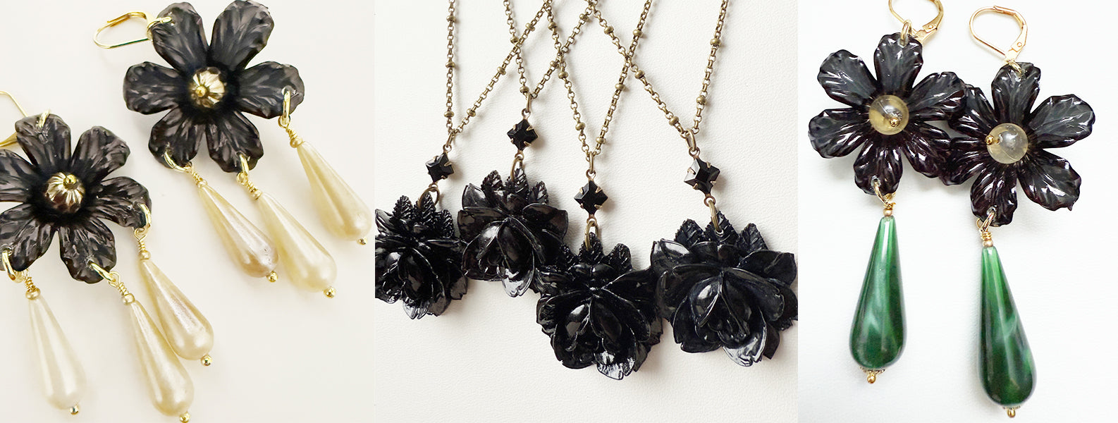 Our exclusive mini collections are hand crafted with care in CA, offering one-of-a-kind pieces using unique materials and rare vintage dead stock supplies. Our jewelry blends influences from Art Deco, Mid Century, Retro, Gothic styles that you can wear everyday for every occasion.