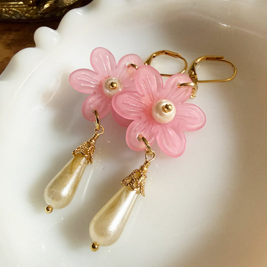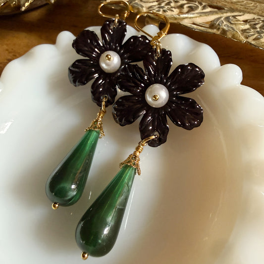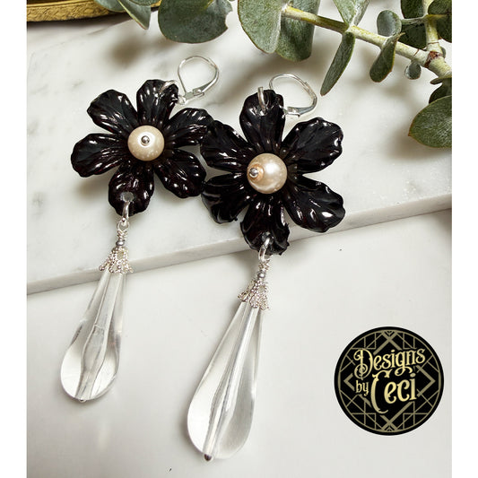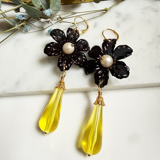 Cherry Blossom Drop Earrings BLACK&PURPLE