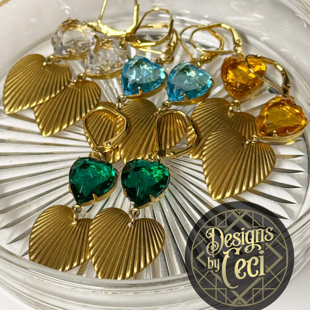 These earrings are so elegant they are delicate, but still make a statement. They catch the light beautifully and the little gold caps on the teardrop shaped crystals are my favorite detail. (I paired it with a golden shell necklace, which is another of Ceci’s designs)